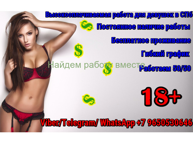 Дорогие девушки 18-30 лет, приглашаем Вас на высокооплачиваемую работу в Санкт-Петербурге! Расчет ежедневный, пришла-заработала-ушла, захотела вернуться вернулась. Условия вас приятно удивят. Работать днем или ночью выбирать Вам! Свободный график! Большая база постоянных клиентов! Приятные и полезные знакомства! Жду Ваши сообщения и фото из жизни на WhatsApp/Viber/Telegram +79650530646